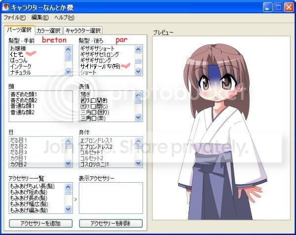 Atentie! Daca nu va apare exact imaginea de mai sus, inseamna ca nu aveti innstalat un pachet anume, dar nu trebuie neaparat! Eu, de exemplu nu am pachetul instalat, deci, nu imi apare cu caracterele[literele] japoneze, ci cu altele, dar instructiunile ce urmeaza sunt valabile pentru ambele cazuri! Al doilea pas Dupa ce ati trecut de pasul 1, sunteti gata sa incepeti sa va conturati personajul: Tipul de breton, nu conteaza care, aici de exemplu am selectat al doilea tip, doar dand click pe el. In cazul nostru imaginea obtinuta va arata asa: